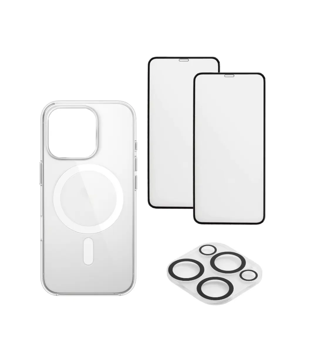 Protege tu iPhone al máximo con este set de alta calidad, que incluye todo lo necesario para mantener tu dispositivo impecable y seguro sin comprometer su estilo.